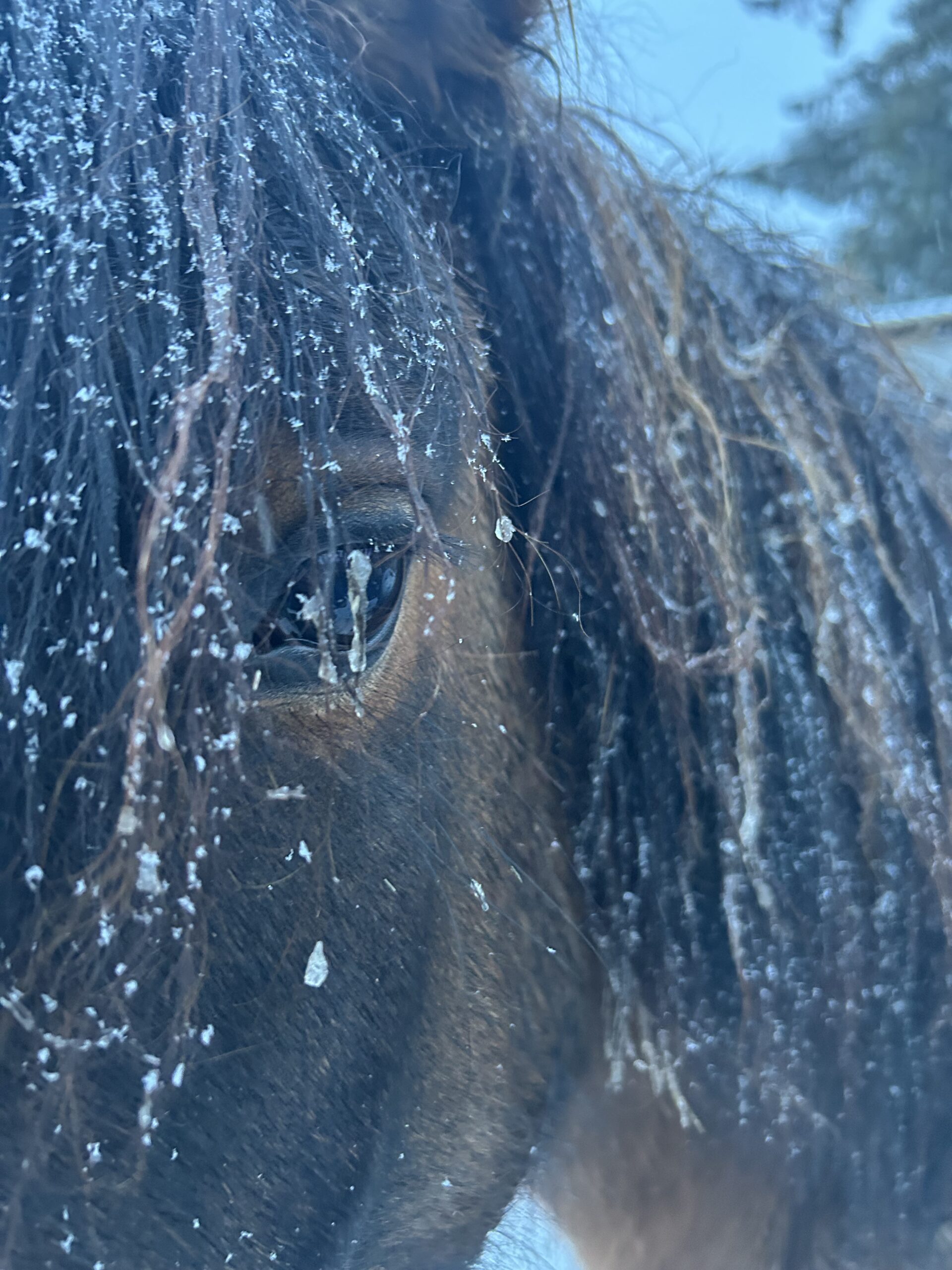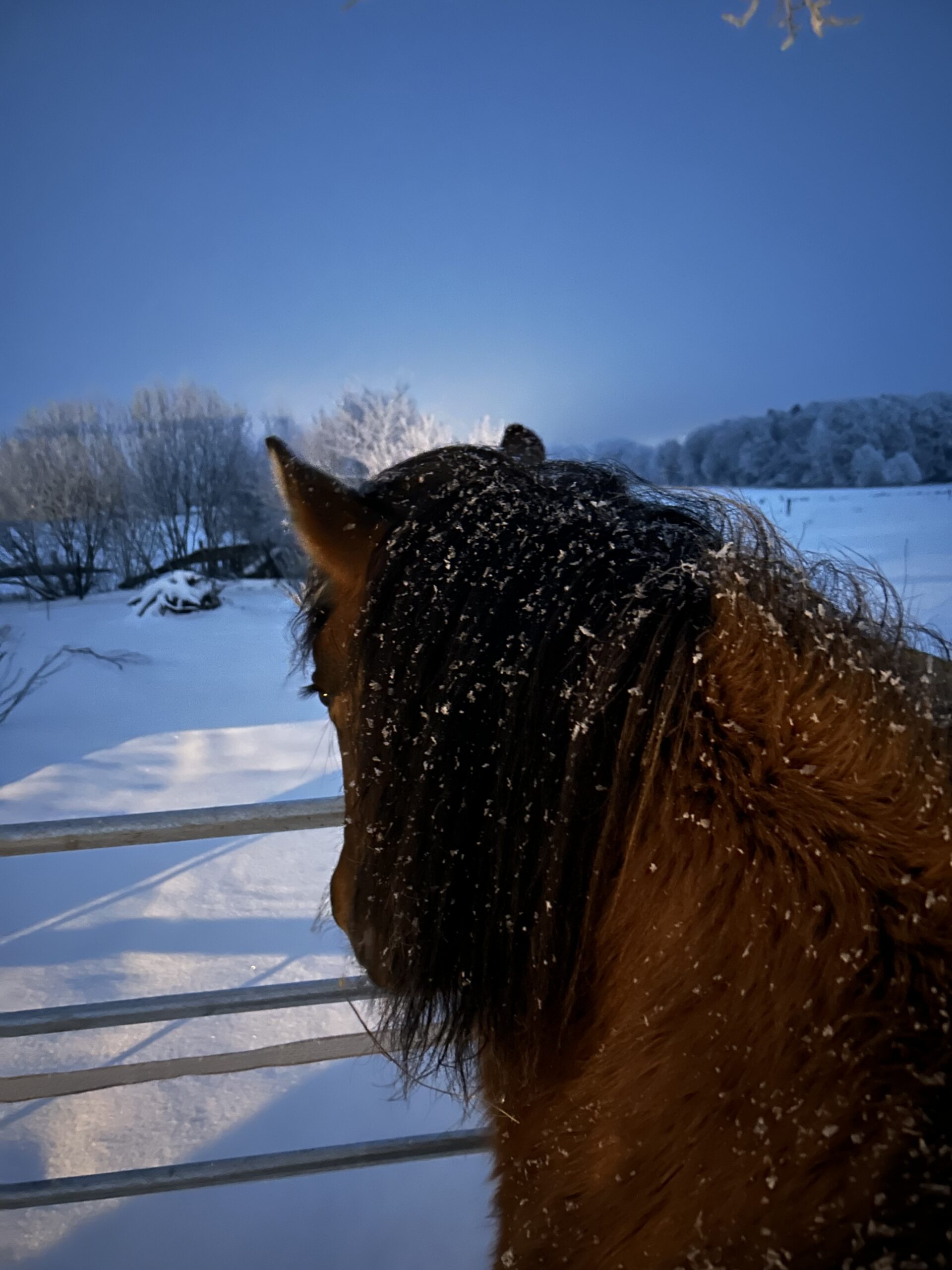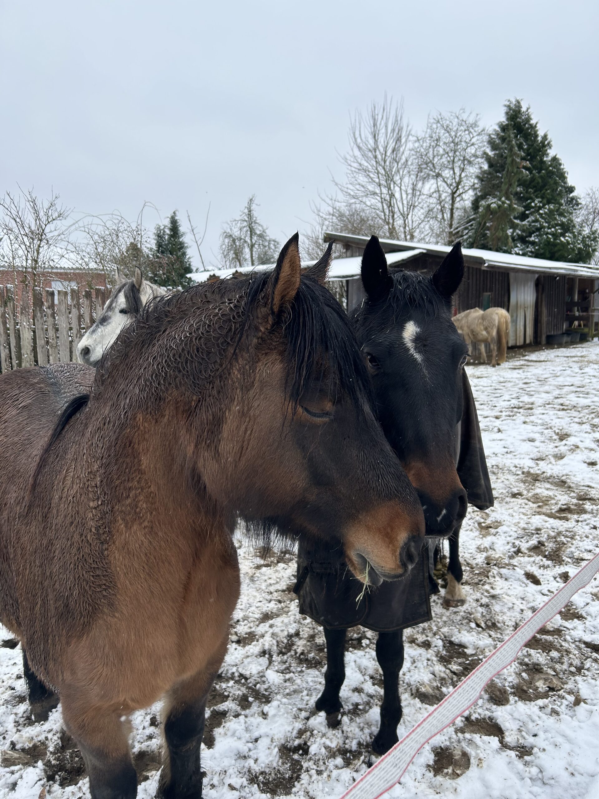 Bei allem Mehraufwand, den der Winter so mit sich bringt, hat er aber auch seine schönen Seiten. Die Ponys fühlen sich pudelwohl und spielen ausgiebig miteinander – als wenn sie das Wetter gar nicht berührt! Mutter Natur hat augenscheinlich gut für die Highland Ponys gesorgt hat: keiner braucht eine Decke, ihr dickes Fell schützt und hält kuschelig warm!